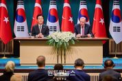 (원투원뉴스) 튀르키예를 국빈 방문한 이재명 대통령은 24일(현지시간) 앙카라 대통령궁에서 레제프 타이이프 에르도안 대통령과 양자회담을 통해 방산, 원자력, 바이오, 인프라, 인적·문화 분야 등에서 협력을 강화해 나가자는 데 뜻을 모았다. 양국 정상은 또 이러한 포괄적 협력을 원활히 추진하기 위한 '대한민국과 튀르키예공화국 간 전략적 동반자 관계에 관한 공동성명'을 채택했다. 이 대통령과 에르도안 대통령은 이날 단독회담에 이어 확대회담, 양해각서(MOU) 서명식을 순차적으로 가진 뒤 이 같은 내용을 담은 공동언론발표를 진행했다. 대한민국 대통령으로는 13년 만에 튀르키예를 국빈 방문한 이 대통령은 국부(國父)로 불리는 무스타파 케말 아타튀르크 영묘 헌화식과 대통령궁에서 열린 공식환영식에 참석한 후 에르도안 대통령과 1시간 43분에 걸쳐 정상회담을 했다. 이 대통령은 공동언론발표를 통해 "튀르키예의 한국전쟁 참전 75주년이자 저의 대통령 취임 첫해인 올해 '형제의 나라' 튀르키예를 방문하게 되어 매우 뜻깊게 생각한다"며 "양국은 2012년 '전략적 동반자 관계'를 체결하고 정무, 경제, 문화,