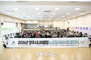 (원투원뉴스) 양주시가 지난 12일 옥정호수도서관 3층 예술극장에서 양주시니어클럽 주관으로 ‘2026년 노인일자리 및 사회활동지원사업 발대식’을 개최했다. 이날 행사에는 노인일자리 참여 어르신과 관계자 등 180여 명이 참석해 성황을 이뤘다. 행사는 공립리첼아이어린이집 어린이 사물놀이단의 식전공연을 시작으로 ▲후원금 전달식 ▲관장 인사말 ▲내빈 축사 ▲개회 선포 ▲선언문 낭독 ▲피켓 행진 ▲단체사진 촬영 순으로 진행됐다. 또한 양주시니어클럽 공동체사업단 카페 매장의 수익금 일부를 모아 조성한 후원금 200만 원을 양주시사회복지협의회에 전달하는 행사도 함께 열렸다. 전달된 후원금은 관내 복지사각지대 대상 긴급지원에 사용될 예정이다. 서의동 양주시니어클럽 관장은 “참여 어르신들께 자긍심과 안전한 근무 환경을 제공하는 데 최선을 다하겠다”며, “특히 공동체사업단 카페 매장의 수익금을 지역사회 환원 사업에 활용해 어르신들의 사회참여가 실질적인 성과로 이어지도록 꾸준히 노력하겠다”고 말했다. 양주시 관계자는 “노인일자리사업은 어르신들의 활기찬 노후를 보장하고 지역사회 발전을 이끄는 주요 사업”이라며, “어르
