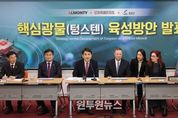 (원투원뉴스) 김진태 강원특별자치도지사는 1월 15일, ㈜알몬티 인더스트리 최고운영책임자(COO)인 스티븐 알렌(Steven Allen), 최명서 영월군수 등과 함께 영월 상동 텅스텐 광산을 중심으로 한 핵심광물(텅스텐) 육성 방안을 발표했다. - 텅스텐은 국가 핵심광물 38종 중 하나로, 반도체와 방위산업 등 국가 전략산업 전반에 필수적으로 활용되는 핵심 자원이다. 영월 상동 텅스텐 광산은 세계 평균 품위(0.18~0.19%)의 약 2.5배에 달하는 0.44%의 고품위를 보유한 광산으로, 현재 국내 텅스텐은 전량 수입에 의존하고 있는 상황에서 영월군 상동읍은 국내 유일의 텅스텐 생산 준비 지역으로 주목받고 있다. - 경제적 가치는 텅스텐 정광(품위 65%) 기준 약 27조 원 규모로 추산되며, 이를 산화 텅스텐(품위 99%)으로 생산할 경우 약 46조 원 규모에 이를 것으로 예상된다. 이날 ㈜알몬티는 텅스텐 생산·수출 계획과 함께 국내 공급 방안을 설명했다. 현재 선광장 공장은 마무리 단계에 접어들어 조만간 시험 생산을 거친 뒤 올해 안에 본격적인 생산과 출하가 가능할 것으로 보고 있