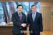 (원투원뉴스) 경주시는 한·중 교류 확대와 Post-APEC 협력 방안을 논의하기 위해 주낙영 경주시장이 천르뱌오 주부산중국총영사관 총영사를 접견해 의견을 나눴다고 20일 밝혔다. 이날 면담은 19일 오후 경주시장실에서 열렸다. 주 시장은 이날 APEC 정상회의 경주 개최 성과를 공유하며 “가장 한국적인 도시 경주에서 APEC 정상회의를 성공적으로 개최할 수 있도록 ‘한·중 우호의 밤’ 개최 등 중국 측이 보내준 성원과 협력에 깊이 감사드린다”고 말했다. 이어 “경주는 신라 천년의 고도답게 중국 9개 역사문화도시와 자매·우호도시 관계를 맺고 활발한 교류를 이어오고 있다”며 “앞으로도 중국 총영사관의 지속적인 관심과 협조를 부탁드린다”고 덧붙였다. 주 시장은 또 중국이 2026년 APEC 의장국을 맡는 점을 언급하며, 2026년 선전(深圳) APEC 정상회의의 성공적인 개최를 기원하고 APEC을 계기로 한 양국 간 협력과 교류 확대에 대한 기대를 밝혔다. 이에 천 총영사는 “2025 APEC 정상회의가 경주에서 성공적으로 개최된 것은 경주시장의 리더십과 경주 시민의 저력을 보여준 사례”라