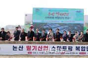 (원투원뉴스) 대한민국 스마트농업을 선도 중인 충남도가 ‘딸기 메카’ 논산에 대규모 수출 전문 딸기 스마트팜 단지를 만든다. 도는 13일 논산시 부적면 마구평리 일원에서 전형식 정무부지사와 청년농업인 등 300여 명이 참석한 가운데 ‘논산 딸기산업 스마트팜 복합단지(이하 논산 딸기 복합단지)’ 착공식을 개최했다. 논산 딸기 복합단지는 2028년까지 145억 5500만 원을 투입, 14.1㏊(4만 3000평) 규모로 조성한다. 논산 딸기 복합단지는 논산시가 국유지 땅을 매입해 용배수, 전기, 도로, 오폐수 처리 등 기반 시설을 설치한 뒤 부지를 제공하고, 청년농 등이 보조·융자금과 자부담으로 온실을 설치한다. 1단계 충남형 스마트팜 복합단지 7.4㏊는 15개 구획으로 나눠 올 상반기 완공을 목표로 조성 추진 중이다. 도와 논산시는 15개 구획 가운데 12개 구획 12명의 입주 청년농 선발을 마쳤으며, 다음 달 중 나머지 3명을 선발할 계획이다. 각 구획당 면적은 3300∼4950㎡ 규모로, 청년농에게 안정적인 스마트팜 경영 기회와 함께 자립 기반을 제공한다. 2단계 스마트 원