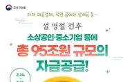 (원투원뉴스) 자재 대금결제, 직원 급여와 상여금 등… 설 명절 전후 소상공인·중소기업 등에 총 95조 원 규모의 자금공급! (2.14.~2.18.) - 중소·중견기업 ■ 특별대출, 보증 · 지원기간: ~3.5. · 신청방법: 산업은행, 기업은행, 신용보증기금 지점 상담 - 중소기업·소상공인 ■ 거래 기여도, 신용등급에 따라 은행권 금리우대 대출 · 지원기간: ~3.13. *4대 시중은행 기준(타 은행은 보도자료 참고) · 신청방법: 은행 영업점 방문→설 명절 특별자금지원 상담 - 전통시장 상인 ■ 명절 자금 지원 · 내용 : 연 4.5% 이내 금리 / 최대 1000만 원 대출 · 지원기간: ~2.13. · 신청방법: 우수시장(기초지자체 추천) 소속 상인이 상인회에 신청
