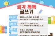 (원투원뉴스) 제주도교육청 서귀포도서관은 4월 5일부터 초등학교 4~6학년을 대상으로 ‘생각 톡톡 글쓰기’ 프로그램을 운영하며 참가자 15명을 선착순 모집한다. 이번 프로그램은 어린이들이 생각을 글로 표현하는 과정을 통해 창의적 사고력과 자기표현 능력을 키울 수 있도록 마련됐다. 운영 기간은 4월 5일부터 5월 3일까지이며 매주 일요일 오전 10시부터 12시까지 총 5회에 걸쳐 진행된다. 교육은 고지은 독서논술지도사가 맡아 ▲좋은 글 읽기 ▲글감 찾기 ▲글의 구조 이해 ▲초안 작성 ▲퇴고 과정 등 단계별 글쓰기 활동으로 구성되며 학생들이 자신만의 글을 완성할 수 있도록 지도할 예정이다. 특히 마지막 차시에는 어린이 작가와의 만남과 낭독회를 통해 학생들이 직접 쓴 글을 발표하는 기회를 제공한다. 참가 신청은 24일 오전 10시부터 제주특별자치도교육청 공공도서관 누리집을 통해 가능하며 선착순으로 마감된다. 서귀포도서관 관계자는 “이번 프로그램이 어린이들이 글쓰기에 대한 흥미를 높이고 자신의 생각을 자신감 있게 표현하는 계기가 되기를 기대한다”며 “앞으로도 다양한 독서·문화 프로