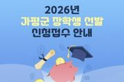 (원투원뉴스) 가평군이 지역 학생들의 균등한 교육 기회를 보장하고 우수 인재를 육성하기 위해 2026년도 장학생 선발에 나선다. 군은 올해 중학생 17명, 고등학생 76명, 대학생 107명 등 총 200명을 장학생으로 선발할 계획이다. 장학금은 학생들의 다양한 상황과 역량을 고려해 △으뜸 △특기 △복지 △환경 △보금자리 등 5개 분야로 나눠 선발한다. 신청 자격은 공고일(3월 3일) 기준 가평군에 3년 이상 거주한 군민 또는 그 자녀인 중‧고등학생과 대학생이다. 신청을 희망하는 학생은 공고문을 참고해 5개 분야 가운데 하나를 선택한 뒤 신청서와 관련 구비서류를 준비해 거주지 관할 읍면사무소에 제출하면 된다. 접수 기간은 3월 4일부터 26일 오후 6시까지다. 자세한 사항은 가평군청 홈페이지 고시공고를 통해 확인할 수 있다.