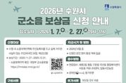 (원투원뉴스) 수원특례시는 2월 27일까지 ‘2026년 군소음 피해보상금’ 신청을 받는다. 신청 대상은 2020년 11월 27일부터 2025년 12월 31일까지 수원시 소음대책지역에 주민등록을 두고 실제 거주한 주민이다(외국인 포함). 소음대책지역은 국방부 군소음포털에서 확인할 수 있다. 2월 27일까지 신청해야 한다. 정부24 홈페이지, 현장 방문, 등기 우편 중 한 가지 방법을 선택해 신청하면 된다. 현장 신청은 세류2동·평동·구운동·곡선동 행정복지센터와 서둔동 커뮤니티센터(권선구 서호로 138), 탑동시민농장(권선구 서둔로 155)에서 평일 오전 9시부터 오후 5시까지 할 수 있다. 1월 13일까지는 출생 연도 끝자리 기준 5부제를 적용한다. 월요일은 1·6, 화요일 2·7, 수요일 3·8, 목요일 4·9, 금요일 5·0 해당자가 신청할 수 있다. 온라인 신청은 정부24 홈페이지에서 ‘군소음’을 검색해서 할 수 있다. 소급 보상을 원하는 주민은 과거 연도별로 각각 추가 신청해야 한다. 등기 우편 신청은 ‘수원시 팔달구 효원로 241, 수원시청 공항이전추진단 군소음보상팀