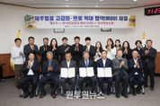 (원투원뉴스) 제주시는 4월 1일 시청 본관 회의실에서 한국양봉농협, 한국양봉협회 제주시지부와 함께 ‘제주벌꿀의 고급화와 판로 확대를 위한 업무협약’을 체결했다. 이날 협약식에는 김완근 제주시장을 비롯해 김용래 한국양봉농협 조합장, 고원삼 한국양봉협회 제주시지부장, 임윤규 한국꿀벌수의사 회장 등 관계자 20여 명이 참석했다. 이번 협약은 제주 벌꿀이 지닌 우수한 품질에도 불구하고 관광 중심 소비 구조와 제한된 유통망으로 제값을 받지 못하는 한계를 개선하고, 생산부터 유통·마케팅까지 연계된 산업 경쟁력을 확보하기 위해 추진됐다. 특히 통합 마케팅과 이미지 개선을 통해 제주벌꿀의 브랜드 가치를 높이고, 단순 관광상품에서 벗어나 고부가가치 프리미엄 농산물로의 전환을 본격화할 계획이다. 제주시는 이번 협약을 계기로 유통 구조 개선과 시장 신뢰도 제고를 동시에 추진해 양봉농가의 안정적인 소득 기반을 마련하고, 제주 양봉산업을 지속가능한 고부가가치 산업으로 육성해 나갈 예정이다. 김완근 제주시장은 “이번 협약은 제주벌꿀의 품질 경쟁력을 시장과 연결하는 중요한 전환점”이라며, “등급제 정착과 유통