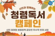 (원투원뉴스) 인천북부교육지원청은 교직원·학생·학부모·시민 누구나 쉽게 참여할 수 있는 ‘청렴독서 캠페인’을 9월 25일부터 10월 10일까지 운영한다고 밝혔다. 청렴문화 확산과 생활 속 청렴 실천 분위기 조성을 위해 진행되는 이번 캠페인은 상반기 청렴정책 아이디어 공모전에서 시민이 제안한 우수작을 구체화한 것으로, QR코드로 간단히 참여할 수 있다. 인상 깊게 읽은 청렴도서를 한 줄 서평으로 추천하고 앞으로 읽고 싶은 청렴도서를 적는 방식으로 진행되며, 참여자 중 추첨을 통해 20명에게 청렴도서를 증정하며, 당첨자는 10월 13일 발표된다. 북부교육지원청 관계자는 “이번 캠페인은 시민 아이디어를 정책으로 발전시킨 첫 사례”라며 “교육공동체 누구나 손쉽게 참여해 청렴을 생활 속에서 실천할 수 있는 좋은 기회가 될 것”이라고 말했다.