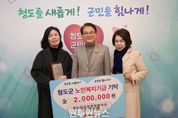 (원투원뉴스) 청도군이 노인복지 기반 조성과 노인 단체의 건전한 육성을 목표로 설치·운영 중인 노인복지기금이 군민들의 따뜻한 관심과 온정으로 새로운 활력을 얻고 있다. 지난 12일, 청도대남병원장례식장 엄순애 대표는 “어르신들의 복지 증진에 조금이나마 도움이 되길 바란다”며 노인복지기금 200만 원을 기탁했다. 엄 대표는 이번 기탁에 앞서서도 200만 원을 기탁한 바 있어, 지금까지 총 400만 원의 기탁을 통해 지역 어르신들을 향한 나눔을 꾸준히 실천해오고 있다. 또한 평소에도 다양한 봉사활동에 적극 참여하며 지역사회 이웃사랑 실천에 앞장서고 있다. 김하수 청도군수는 “지속적인 기탁과 관심으로 노인복지기금에 힘을 보태주신 데 깊이 감사드린다”며 “군민 여러분의 따뜻한 참여가 어르신들의 복지 향상에 큰 밑거름이 되는 만큼, 앞으로도 더 많은 어르신들에게 실질적인 도움이 될 수 있도록 최선을 다하겠다”고 밝혔다.