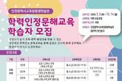 (원투원뉴스) 인천광역시교육청평생학습관은 2월 10일부터 13일까지 ‘2026년 초등·중학 학력인정 문해교육’ 학습자를 모집한다 ‘학력인정 문해교육’은 비문해 및 저학력 성인을 대상으로 초·중학교 학력 취득 기회를 제공하기 위해 마련됐으며, 초등 및 중학 과정을 각 1~3단계로 세분화하여 3월 3일부터 12월 14일까지 운영한다. 평생학습관 관계자는 “이번 교육을 통해 학습자들이 배움의 즐거움을 되찾고, 학력 취득을 통해 자존감을 높일 수 있기를 기대한다”고 말했다. 모집에 대한 자세한 사항은 평생학습관 기획정보부로 문의하면 된다.