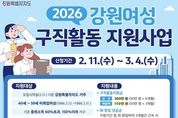 (원투원뉴스) 강원특별자치도는 2월 11일부터 도내 경력단절 미취업 여성의 경제활동 참여를 확대하기 위해 '여성구직활동 지원사업'을 추진한다. - '여성구직활동 지원사업'은 경력단절 여성의 재취업을 지원하기 위한 사업으로, 도내 여성에게 생애 1회에 한해 신규 참여와 재참여를 각각 지원하며 1인당 최대 450만 원의 구직활동지원금과 취·창업성공금, 취업지원 프로그램을 제공한다. 신청 자격은 모집 시작일인 2월 11일 기준 강원특별자치도에 거주하는 40세 이상 59세 이하(1966.2.12.~1986.2.11.)의 경력단절 미취업 여성으로, 기준중위소득 60% 초과 150% 이하 요건을 충족해야 하며 신청은 2월 11일부터 3월 4일까지(3주간) 강원일자리정보망을 통해 온라인으로 가능하다. 사업 대상자로 선정되면 교육비, 교재 구입비, 시험 응시료, 면접 활동비 등에 사용할 수 있는 구직활동지원금을 이지웰 복지몰 포인트로 매월 50만 원씩 최대 450만 원까지 지원받게 된다. 아울러 대상자는 도내 여성새로일하기센터 전담 상담사를 통해 상담, 취업 정보 제공 등 맞춤형 취업지원 서비스를 받