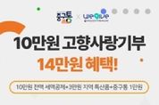 (원투원뉴스) 대전 중구는 연말을 맞아 부여군과 협업하여 지역화폐를 활용한 고향사랑기부제 상호 기부 이벤트를 진행한다고 24일 밝혔다. 이번 이벤트는 두 지자체가 가진 지역화폐 앱을 연계하여, 중구 지역화폐 ‘중구통(通)’ 앱 이용자가 부여군에 10만 원 이상 기부하면 중구통 1만 원을 지급하고, 부여군 지역화폐 굿뜨래페이 앱 이용자가 대전 중구에 10만 원 이상 기부하면 굿뜨래페이 1만 원을 지급한다. 기부자는 기본 혜택인 10만 원 전액 세액공제, 기부액의 30% 이내 답례품에 더해 지역화폐까지 받을 수 있어 총 14만 원 수준의 혜택을 받게 된다. 이번 상호 협업은 중구의 지자체 간 지역화폐 플랫폼 협력의 첫 사례로서, 도시 간 상생 모델 확대 및 지역 경제 활성화에 기여할 것으로 기대하고 있다. 특히 연말을 맞아, 기부 수요가 높아지는 시기에 지역화폐 지급 혜택이 더해져 고향사랑기부제 참여 확대 효과가 클 것으로 전망하고 있다. 김제선 중구청장은 “중구통 앱을 이용하는 주민뿐 아니라 타 지역 주민들도 기부에 참여해 세액공제·답례품·지역화폐 등 다양한 혜택을 함께 누리길 바란다”라며, “앞으