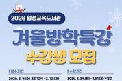 (원투원뉴스) 횡성교육도서관(관장 권정애)은 2월 4일부터 2월 10일까지 관내 초등학생을 대상으로 겨울방학 특강 수강생을 모집한다. 이번 겨울방학 특강은 2월 24일부터 2월 27일까지 운영되며, △생각하는 두뇌게임 체스야 놀자! △그림책 속 영어놀이터 △큐브블럭 건축대탐험 △마음을 그리는 캘리그래피 등 총 4개 강좌로 구성됐다. 권정애 관장은 “이번 겨울방학 특강을 통해 학생들이 자기계발과 창의력 증진을 경험하며 의미 있는 시간을 보내고, 방학 기간 동안 유익하고 알찬 배움의 기회를 갖길 바란다”고 밝혔다. 참가 신청은 2월 4일부터 2월 10일까지 횡성교육도서관 누리집을 통해 가능하며, 선착순으로 모집한다. 수강료와 재료비는 모두 무료다. 강좌 수강 및 모집과 관련한 자세한 사항은 횡성교육도서관 누리집을 참고하거나 어린이자료실로 문의하면 된다.