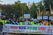 (원투원뉴스) 대전 동구는 27일 동대전초등학교 일원에서 대전동부녹색어머니회 주관으로 어린이 교통안전문화 확산을 위한 합동 캠페인을 실시했다고 밝혔다. 이날 캠페인에는 박희조 동구청장을 비롯해 동부경찰서, 동대전초등학교 관계자, 녹색어머니회 회원 등 30여 명이 참여해 어린이보호구역 내 교통안전의식을 높이기 위한 홍보 활동을 펼쳤다. 참여자들은 ▲횡단보도 통행 및 정지선 준수 ▲안전속도 5030 실천 ▲스쿨존 내 불법 주정차 단속 및 계도 ▲위험요소 점검 및 제거 등을 중심으로 교통안전 캠페인을 진행했다. 박희조 동구청장은 “아이들이 안심하고 학교에 갈 수 있도록 지역사회가 함께 힘을 모아야 한다”며 “앞으로도 민·관이 협력해 어린이 교통안전문화가 정착될 수 있도록 지속적으로 노력하겠다”고 말했다.