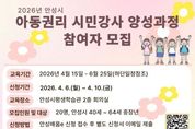 (원투원뉴스) 안성시는 아동친화도시로서 아동권리 인식 확산과 시민강사 양성을 위해 '아동권리 시민강사 양성과정' 참여자를 모집한다. 이번 과정은 아동권리에 대한 지역사회 인식을 확산하고, 관련 교육을 수행할 시민강사를 양성함과 동시에 중장년층의 사회참여 기회를 확대하기 위해 마련됐다. 교육은 2026년 4월 15일부터 6월 25일까지 운영되며, 총 11회차에 걸쳐 집합교육과 자율학습을 병행하여 진행된다. 모집 대상은 안성시에 거주하는 40세부터 64세까지의 중장년 시민 20명이다. 교육신청은 4월 6일부터 10일까지 안성시평생교육통합플랫폼(안성배움e)를 통해 접수한 후, 별도의 신청서를 이메일로 제출하면 된다. 교육대상자는 신청서를 바탕으로 참여 의지와 지원동기 등을 종합적으로 평가해 선발할 예정이다. 교육과정은 ▲아동권리 및 인권 기초 이해 ▲유엔아동권리협약의 이해 ▲긍정적 훈육 ▲아동인권 교육 프로그램 설계 등 이론과 실습을 병행하는 체계적인 내용으로 구성된다. 수료자는 민간자격인 ‘아동인권옹호전문가 2급’ 자격시험에 응시할 수 있으며, 향후 관내 초·중학교와 연계한 교