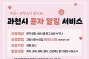 (원투원뉴스) 과천시는 4월 1일부터 시정 주요 소식을 문자로 제공하는 ‘문자 알림 서비스’를 새롭게 시행한다고 밝혔다. 이번 서비스는 시민들이 필요한 정보를 더욱 쉽고 빠르게 확인할 수 있도록 하기 위한 것이다. 과천시는 기존 누리소통망(SNS) 중심의 정보 제공 방식에 문자 안내를 추가해 별도의 검색 없이 시정 소식을 바로 확인할 수 있도록 했다. 문자로 발송되는 주요 내용은 시의 각종 복지 혜택, 문화, 공연, 축제, 행사, 교육, 긴급 재난 등 시민의 삶의 질을 높일 수 있는 소식들이다. 특히, 문자 메시지 내에 포함된 바로가기 주소(링크)를 클릭하면 상세 정보를 확인할 수 있는 웹페이지 바로 연결돼 정보 접근성 및 편의성을 더했다. 문자 알림 서비스 신청과 해지는 과천시청 누리집에서 상시 가능하다. 과천시 관계자는 “문자 알림 서비스를 통해 시의 다양한 소식을 시민들에게 적시에 제공되도록 소통을 강화해 나가겠다”라고 밝혔다.