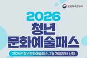 (원투원뉴스) ■ 2026 청년문화예술패스, 2월 25일부터 신청 - 19~20세 청년 최대 20만 원 청년 문화예술패스는 19~20세 청년*이 협력 예매처에서 공연, 전시, 영화 예매에 즉시 사용할 수 있는 이용권입니다. * 2026년 대상은 2006~2007년생 서울, 경기, 인천 등 수도권 지역 거주 청년→15만 원 비수도권 지역 거주 청년→20만 원 기존에는 사전에 한 개의 예매처만 선택해 이용할 수 있었는데요. 올해부터는 7개 예매처에서 공연과 전시, 영화 등 보고 싶은 작품의 관람권을 예매할 수 있습니다. NOL ticket, 티켓링크, yes24, Melon티켓, MEGABOX, 롯데시네마, CGV ■ 지원대상 대한민국 19~20세 청년 총 28만 명 생애 최초 1회 지원 ■ 신청기간 2026년 2월 25일~6월 30일 신청순 발급(지역별 예산 소진 시 해당 지역 발급 마감) ■ 신청방법 청년문화예술패스 누리집 회원가입 후 온라인 신청 ■ 문의 청년문화예술패스 고객지원센터 ☎1577-1968