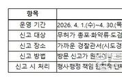 (원투원뉴스) 경찰청은 불법무기류로 인한 범죄와 사고를 미리 방지하기 위하여 국방부 및 행정안전부와 합동으로 4월 1일부터 30일까지 한 달간 '2026년 1차 불법무기류 자진신고 기간'을 운영한다. 자진신고 대상은 허가 없이 소지하고 있거나, 소지 허가가 취소된 총포·화약류(화약·폭약·실탄·포탄 등)·도검·분사기·전자충격기·석궁 등 불법무기이다. 특히 가족이 보관하던 유품이나 이사 과정에서 발견된 무기도 이번 기간에 신고하면 안전하게 처리할 수 있다. 기간 내에 자진신고 하면 원칙적으로 형사처벌과 행정처분을 면제하며, 제출자가 해당 무기의 소지를 희망하면 관련 법에 규정된 무기 소지 결격사유 등 확인을 거쳐 소지 허가를 받는 것도 가능하다. 신고는 본인 또는 대리인이 직접 방문하여 제출하는 것이 원칙이지만, 경찰관서 방문이 어렵거나 신분 노출을 원하지 않는 경우 전화나 전자우편 등 비대면 방식으로 먼저 신고한 뒤 무기를 제출할 수 있다. 또한, 부득이한 사정으로 신고 기간 내에 불법무기를 제출하기 어려울 경우에는 관할 경찰관서에 연락하여 제출 방법을 협의할 수 있다. 자진신고 기간