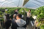 (원투원뉴스) 논산시는 지난 3월 10일 농업기술센터 교육관과 기술 적용 농가에서 ‘딸기 LED 적용 다단재배 기술보급 시범사업 현장설명회’를 개최했다. 이번 설명회는 딸기 재배의 공간 활용도를 높이는 LED 적용 다단재배 기술의 현장 확산과 안정적인 기술 정착을 위해 마련됐으며, 전국 시군 농업기술센터 사업 담당자와 농업인 등 약 30여 명이 참석했다. 딸기 다단재배는 시설 공간을 입체적으로 활용해 단위 면적당 생산성을 높일 수 있는 재배 방식으로 주목받아 왔지만, 광 부족 등으로 인해 기대했던 만큼의 수확량이 나오지 않는 한계가 있었다. 이에 논산시농업기술센터는 LED 보광을 적용한 시험재배를 추진해 생육 안정과 생산성 향상 가능성을 확인했으며, 이러한 성과를 바탕으로 농촌진흥청에 기술 도입을 제안했다. 특히, 계단형과 3단형 다단재배 등 다양한 시험 과정을 거치며 시행착오를 반복한 끝에, 현재의 2단 재배 방식이 안정적인 생산성과 관리 효율을 확보할 수 있는 형태로 정립됐다. 농촌진흥청은 2단 베드 구조의 안정성을 평가하고 이를 기반으로 딸기 다단베드 재배체계를 확립했다. 현재