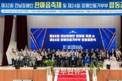(원투원뉴스) 영광군은 지난 30일 영광스포티움 국민체육센터에서 22개 시·군 장애인단체 등 1,500여 명이 참석한 가운데‘제32회 전남장애인한마음대축제 및 제24회 장애인동거부부 합동결혼식’을 성황리에 개최했다고 밝혔다. 장애인에 대한 이해 증진과 재활 의식 고취를 위해 전라남도와 영광군이 공동 주관하고 (사)전남지체장애인협회가 주최한 이날 행사에는 장세일 영광군수, 정광선 전라남도 보건복지국장, 이광일 전라남도의회 부의장을 비롯한 유관기관 관계자들이 참석해 자리를 빛냈다. 특히 ‘제24회 장애인동거부부 합동결혼식’에서는 13쌍의 장애인 부부가 정식으로 부부의 연을 맺었다. 화촉 점화, 혼인 서약, 성혼 선언, 주례사, 축가로 이어진 예식은 가족과 참석자들의 따뜻한 축복 속에 진행되며 큰 울림을 남겼다. 장세일 영광군수는 환영사에서 “합동결혼식을 맞이하신 부부께 따뜻한 축하를 드리며, 오랜 세월 서로 믿고 의지하며 걸어온 길이 앞으로 더 큰 기쁨과 희망으로 채워지기를 기원한다”며, “장애인을 위한 교육 프로그램 확대와 일자리 제공 등을 통해 장애인 복지 향상과 자립 지원을 위한 다양한 노력을 펼