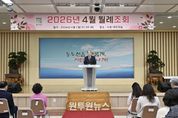 (원투원뉴스) 동두천시는 4월 1일 시청 대회의실에서 4월 명예시장으로 위촉된 조황래 동두천중앙성모병원 원장과 전 직원이 참석한 가운데 월례조회를 개최했다. 이날 식전 공연에서는 송내동 주민자치 프로그램 댄스트롯장구팀의 재능 기부로 춤과 노래를 선보여 분위기를 더했다. 박형덕 동두천시장은 제19회 암 예방의 날 유공 공무원 1명(▲훈격 장관)과 자원봉사 활동 유공 시민 1명(▲훈격 도지사)에게 표창을 전수했다. 또한, 통합방위지원태세 업무 유공 시민 2명, 시정발전 유공 시민 20명에게 표창을 수여했으며, 2025년도 주요업무 자체평가 15개 부서에 각각 상장을 수여하고 격려했다. 훈시 사항으로는 첫째, 시민들의 야외 활동이 본격화되는 시기인 만큼 산불 예방과 화재 안전관리에 만전을 기해 달라고 했다. 둘째, 국제유가와 물가 급등으로 서민 경제가 그 어느 때보다 힘든 시기인 만큼 민생 안정을 위해 따뜻한 나눔 행정을 펼쳐줄 것을 강조했다. 끝으로, 시정 발전을 위해 멈추지 않는 혁신을 이어 나가자고 독려했다. 그 일환으로 10년간 방치됐던 소요산 축산물 브랜드육타운을 휴식과 관광이 어우