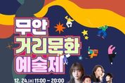 (원투원뉴스) 전남 무안군은 오는 24일 남악 중앙공원 일원에서 무안거리문화예술제를 개최한다. 무안거리문화예술제는 ‘문화 캔버스 – 도시, 예술로 물들다’ 라는 주제로 기존의 음악 공연 중심 거리예술에서 벗어나 다양한 분야의 지역예술가와 군민이 함께 어우러지는 참여형 문화예술제로 마련됐다. 일상 속 거리 공간을 예술로 채워 군민들에게 색다른 문화 향유 기회를 제공하는 것이 이번 행사의 가장 큰 특징이다. ▲무안군립국악원과 무안국악협회가 선보이는 ‘국악한마당’을 시작으로 ▲관내 청소년이 꾸미는 ‘꿈나무 콘서트’ ▲어린이들을 위한 ‘책 읽어주는 산타할머니’ ▲가족 단위 관람객이 함께 즐길 수 있는 ‘밖으로 나온 영화관’ 등 남녀노소 모두가 즐길 수 있는 프로그램으로 풍성하게 구성됐다. 또한 가수 경서, 정재욱과 뮤지컬 가수 루이스초이, 박소연 등이 출연하는 뮤직콘서트가 펼쳐져 연말 분위기를 한층 고조시킬 예정이다. 그 밖에도 관내 작가들과 함께하는 컵·접시 만들기, 크리스마스 리스 만들기, 캘리그라피 달력만들기, 솟대 만들기 등 다양한 체험 프로그램이 운영되며, 목포대학교 미술학과 학생들과 함께하는 길