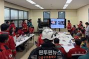 (원투원뉴스) 경상남도의회 확대의장단은 2월 23일 함양군 산불현장 지휘본부를 찾아 산불 진화에 총력을 기울이고 있는 현장 인력들을 격려하고 위문품을 전달했다. 이날 위문은 함양군 마천면에 설치된 산불 지휘본부에서 진행됐으며, 의장을 비롯한 확대의장단이 참석해 산불 진화 및 피해 최소화를 위해 헌신하고 있는 관계자들에게 감사의 뜻을 전했다. 최학범 의장은 현장에서 “강풍과 어려운 여건 속에서도 산불 진화를 위해 밤낮없이 헌신하고 계신 모든 진화 인력 여러분께 깊이 감사드린다”며, “무엇보다 안전을 최우선으로 진화에 임해주시길 바라고, 경상남도의회도 피해가 최소화될 수 있도록 필요한 지원과 협력을 아끼지 않겠다”고 말했다. 함양군 마천면 산불은 지난 21일 토요일 밤 9시경 발화하여 헬기 39대를 동원하여 22일 일요일 오전에 진화율이 66%까지 기록했으나 강한 바람에 불씨가 되살아나 23일 오전 8시 기준 진화율이 30%초반대로 떨어졌다. 현재 현장지휘 본부장은 산림청장 직무대리가 맡고 있으며, 진화가 완료될 때까지 총력 대응을 이어갈 방침이다.