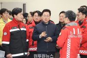 (원투원뉴스) 경상남도는 24일 오전 8시경, 산불 2단계가 발령된 밀양시 삼랑진읍 산불 현장 통합지휘본부를 찾아 진화 상황을 긴급 점검하고 대피 중인 주민들을 위로했다. 이번 산불은 23일 오후 4시 10분경 발생해 밤사이 확산됐으며, 산림청은 24일 새벽 2시 산불 2단계를 발령하고 밤샘 진화 작업을 이어왔다. 박완수 도지사는 이날 현장에서 진화 경과와 확산 추이를 보고받은 뒤, “도내 가용 헬기와 장비, 인력을 신속히 투입해 주불 진화에 최선을 다하되, 현장 인력의 안전 관리에도 철저를 기하라”고 강력히 지시했다. 이어 박 지사는 주민들이 대피 중인 동촌마을회관과 삼랑진초등학교를 차례로 방문해 구호 상황을 직접 살폈다. 현재 대피소 4곳에는 113세대 151명의 주민이 머물고 있다. 박 지사는 대피소에서 주민들의 애로사항을 청취하고 급식을 지원하는 자원봉사자들에게 감사를 표하며, “고령자 등 취약계층이 임시 시설에서 머무는 동안 건강과 생활에 불편함이 없도록 식사, 생필품, 심리 상담 등 행정 지원을 아끼지 말라”고 당부했다. 특히 현장 인근에 요양병원이 위치한 점을 고려해, 어르신과 교통약자