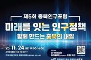 (원투원뉴스) 충북도는 24일, 한국교원대학교 청람아트홀에서 ‘미래를 잇는 인구정책, 함께 만드는 충북의 내일’을 주제로'제5회 충북인구포럼'을 개최했다고 밝혔다. 올해로 5번째를 맞는 충북인구포럼은 저출생·고령화 심화로 인구감소 가속화 등 인구위기에 따른 대응 전략을 충청북도, 충청북도교육청, 한국교원대학교가 함께 모색하기 위해 마련됐다. 이번 포럼에는 김영환 충청북도지사, 차우규 한국교원대학교 총장, 김태형 충청북도교육청 부교육감, 노금식 충청북도의회 인구소멸대응 대책 특별위원회 위원장을 비롯해 도·시군 및 교육 관계자, 연구자, 도민 등 200여 명이 참석했다. 충북은 2025년 상반기 출생아 수 증가율 12.8%로 전국 1위를 기록하는 등, 전국적 저출생 심화 속에서도 상승 추세를 이어가고 있다. 이에 충북도는 결혼·출산 친화환경 조성과 출산·양육 지원정책 강화는 물론, 교육·지역 활성화 정책과 연계한 중장기 인구정책 패러다임 전환을 추진하고 있다. 이번 포럼에서는 이러한 정책 방향을 뒷받침하는 연구 결과를 공유하는 다양한 발제와 토론이 진행됐다. 첫 번째 발표에서는 충청북도