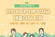 (원투원뉴스) 안성시는 오는 10월 1일부터 11월 7일까지 ‘2025년도 하반기 안성시 대학생 학자금 대출이자’ 지원 신청을 받는다. 지원 대상은 공고일(2025. 10. 1.)기준으로 안성시에 주민등록 주소를 두고 재학(휴학 포함)중인 대학(원) 재학생(휴학생)이다. 지원 대상자로 선정되면 대상자가 한국장학재단에서 대출받은 학자금에 대한 2025년 상반기(1월~6월) 발생 이자를 안성시가 지급하게 된다. 지급은 대출 계좌 원리금에서 차감하는 방식으로 진행되며, 지원 내역은 12월 지급이 확정된 시점에 한국장학재단 인터넷 홈페이지에서 확인할 수 있다. 신청 방법은 주소지 읍·면·동 행정복지센터 또는 안성시청(미래교육과)으로 방문하여 접수하면 된다. 안성시 관계자는 “학자금 대출이자 지원 사업을 통해 대학생들의 학업 부담을 완화하고, 학업에 전념할 수 있는 환경을 조성하는데 도움이 되길 바란다”고 전했다.