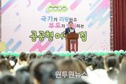 (원투원뉴스) 대전시의회 조원휘 의장은 30일 한밭대학교 실내체육관에서 개최된 대전공공형어린이집연합회 보육인체육대회에 참석해 보육 교직원의 헌신과 노고를 격려하고 아이들이 건강하게 성장할 수 있는 보육 모범도시 조성을 약속했다. 이날 행사에는 지역을 대표하는 단체·기관장, 보육교직원, 연합회 임직원 등 1,000여 명이 참석한 가운데 후원금 기탁식을 시작으로 감사패 전달, 주요내빈 축사 등 1부 개막식 행사를 마치고, 2부에서는 보육교직원들의 체육대회가 본격적으로 이뤄졌다. 조원휘 의장은 “보육인들의 소통과 화합의 장인 오늘 체육대회가 그동안 아이들을 위해 헌신과 노고를 아끼지 않은 여러분께 몸과 마음을 힐링하는 뜻깊은 자리가 되길 기원한다”면서, “대전시의회는 올해 영유아 보육료 인상 촉구와 유보통합 3법 개정 건의안 발의·처리 등 보육 친화도시 대전을 구현하는 데 노력해왔고, 앞으로도 보육인 여러분들이 근무하기 좋은 환경과 양질의 보육서비스를 위한 정책적 근거 마련에 최선을 다하겠다”고 말했다.
