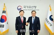 (원투원뉴스) 고령군은 3월 30일 허민 국가유산청장과 면담을 갖고, 세계유산 도시‧대가야 고도 고령의 역사적 가치를 제고하기 위한 핵심 현안사업의 당위성을 설명하며 국가 차원의 적극적인 지원을 건의했다. 이날 고령군이 국가유산청에 건의한 주요 현안사업은 대가야의 역사적 실체를 규명하고 문화유산의 가치를 높이기 위한 3대 핵심 과제로 구성됐다. 먼저, 후기 가야 연맹을 주도했던 ‘대가야’의 역사와 문화를 집중적으로 연구할 전담기관인 ▲ 국립 대가야 연구기관 건립의 필요성을 강력히 피력했다. 고령군은 지산동 고분군의 유네스코 세계유산 등재와 고도 지정 이후 급증한 유산 관리 수요에 선제적으로 대응하고, 대가야의 유물과 학술자료를 집대성할 국가급 컨트롤타워가 대가야의 옛 도읍인 고령에 반드시 설립되어야 함을 강조했다. 이와 함께 선사 시대 걸작으로 평가받는 보물 ▲ 고령 장기리 암각화의 국보 승격 추진을 건의했다. 장기리 암각화는 청동기 시대 농경사회의 태양 숭배와 풍요를 기원하는 동심원, 십자형, 가면 모양 등이 바위에 새겨진 유적이다. 선사시대 사람들의 정신세계와 뛰어난 예술성을 엿볼 수 있어 독보적인 학술적