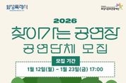 (원투원뉴스) (재)화성시문화관광재단은 1월 12일부터 1월 23일까지 ‘2026 찾아가는공연장’ 참여 공연단체를 모집한다고 밝혔다. ‘찾아가는 공연장’은 화성시의 곳곳에서 다양한 장르의 공연을 제공함으로써 시민들의 일상적인 문화예술 관람을 돕기 위한 사업으로, 2009년부터 시작된 화성시문화관광재단의 대표 문화사업 중 하나다. 지난 2025년도에는 공개 모집을 통해 40개의 공연단체를 선정했으며, 문화취약계층에 방문공연, 공원 광장 거리공연 등을 통해 다양한 장르의 공연으로 화성시민과 함께했다. ‘2026 찾아가는 공연장’은 약 140회차의 공연을 목표로 운영된다. 이번 공연단체 모집은 3년 이상의 공연활동 경력이 있는 공연단체라면 지역, 장르에 상관없이 신청가능하다. 접수는 1월 12일부터 23일까지 온라인으로만 가능하며, 1차 서류‧영상 심사, 2월 9일~10일 2차 실연‧면담 심사를 거쳐 2월 12일에 최종 선정단체 총 35팀을 발표할 예정이다. 화성시문화관광재단 안필연 대표이사는 “지역과 장르의 제한을 두지 않는 만큼, 화성시 곳곳에서 재능을 뽐내줄 다양한 예술 공연단체들의 많은 관심과 지원을 바란다.
