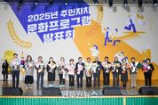 (원투원뉴스) 부여군은 부여군 유스호스텔 실내체육관에서 주민자치 활성화에 이바지한 유공자들을 격려하기 위한 주민자치 표창 수여식과 문화프로그램 발표회를 개최했다고 19일 밝혔다. 이번 수여식에는 주민자치 발전과 공동체 활성화에 헌신한 공로를 인정받아 ▲부여군수 표창 16명 ▲부여군의회의장 표창 5명 ▲국회의원 표창 3명 ▲한국주민자치중앙회장 표창 6명 ▲충남주민자치협의회장 표창 7명으로 총 37명이 수상의 영예를 안았다. 박정현 부여군수는 표창 수여식에서 “주민자치의 뿌리를 튼튼히 다지고 군민 모두가 함께하는 건강한 공동체를 만들어 가는 데 큰 힘이 되어주신 유공자분들께 깊은 감사를 드린다.”라며, “앞으로도 주민자치가 군민 삶의 질을 높이는 중요한 원동력이 될 수 있도록 지속적으로 지원하겠다.”라고 말했다. 이어진 행사로는 2025년 주민자치 문화프로그램 발표회가 열려, 8개 읍면 주민자치회가 그동안 갈고닦은 기량을 군민들에게 선보였다. 이날 발표회에는 지역 주민 400여 명이 참석해 뜨거운 호응을 보냈으며, △구룡면 생활체조를 시작으로 △충화면의 고고장구 △홍산면 라인댄스 △임천면 에어로빅 △석
