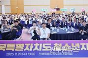 (원투원뉴스) 전북특별자치도는 24일 도청에서 도내 청소년 관련 기관 및 단체 청소년지도자 220여 명이 참석한 가운데‘2025 제9회 전북특별자치도 청소년지도자대회’를 성황리에 개최했다. 대회는 청소년 활동, 상담, 쉼터 등 청소년 유관기관이 한자리에 모여 청소년 지도를 위해 소통과 협력을 강화하고 주도적인 정책지원네크워크를 구축하기 위한 자리이다. 특히 올해 대회는‘함께 웃고 함께 빛나는 특별한 하루’라는 슬로건 아래 청소년지도자들의 노고를 격려하고 상호 교류를 확대하는 뜻깊은 자리로 마련됐다. 1부 행사에서는 청소년 현장에서 헌신해온 지도자 25명에게 전북특별자치도지사, 도의회 의장, 한국청소년단체협의회장 표창 등이 수여됐다. 이어 김제에 귀촌해 독립책방을 운영하는 최별 오느른책밭 대표가‘전북에서 발견한 희망’이라는 주제로 특별 강연을 진행해 큰 호응을 얻었다. 2부에서는 지도자들의 재충전을 위한 교류 프로그램과 조별 미션 워크숍인 ‘청소년지도자 학습동아리 사례 공유회’가 이어졌다. 참가자들은 서로의 경험을 나누며 연대와 배움의 의미를 더했다. 김관영 도지사는“청소년들을 보호하고