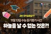 (원투원뉴스) 하늘을 날 수 없는 것들은? ■ 전면 통제대상 · 모든 항공기 이륙 금지 (비행 중 항공기 → 3km 이상 상공에서 대기) · 헬기 · 경량항공기 그리고 초경량 비행장치(드론 포함) 모두 STOP! * 예외: 비상·긴급 항공기 영어 듣기평가에 방해가 되는 '항공기소음 최소화' ■ 언제 통제되나요? 11월 13일(목) 13:05~13:40(총 35분) ※ 듣기평가 전·후 5분 포함 수험생에게 조용한 하늘을! 국민 여러분의 협조를 부탁드립니다.