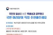 (원투원뉴스) 식품의약품안전처는 국민이 체감하는 탁월한 성과를 창출한 공무원을 국민이 직접 추천해 포상하는 ‘국민추천제’를 1월 20일부터 운영한다고 밝혔다. ‘국민추천제’는 ‘인사는 공정하게, 신상필벌은 확실하게’라는 국민주권정부의 국정철학을 바탕으로 공직사회의 성과 보상 체계를 혁신하고자 올해부터 범정부적으로 도입한 '공무원 특별성과 포상금 제도'의 일환이다. 소관 업무 분야에서 통상적인 직무수준을 뛰어넘는 특별한 성과를 달성한 공무원에게는 기관장 표창과 함께 1인당 최대 3천만원 이내의 파격적인 수준의 포상금을 지급하는 한편, 기관 누리집과 SNS 등을 통해 특별성과 사례를 국민에게 알리고 성과 중심의 공직문화를 조성한다. 1월 20일부터 국민 누구나 식약처 소속 공무원 중 우수한 성과를 창출한 공무원을 365일 언제든지 추천할 수 있다. 오유경 식약처장은 “공무원이 국가와 국민의 이익을 증진하고 공공의 안전과 질서 유지에 앞장선 성과를 체감하는 사람은 국민”이라며, “특별성과 포상금 제도에 국민추천 방식을 도입함으로써 국민이 체감하는 성과가 정당하게 평가받고 보상받는 성과 중심의 공직문화를