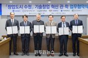 (원투원뉴스) 수원특례시가 경기창조경제혁신센터, 4개 대학과 협력해 대학의 기술창업을 발굴하고, 지원한다. 수원시와 경기창조경제혁신센터, 4개 대학은 30일 시청 상황실에서 ‘창업도시 수원 기술창업 혁신 관·학 업무협약’을 체결하고, 협력을 약속했다. 협약 기관들은 대학의 우수한 연구 성과, 인적 자원을 보유한 우수 기술창업기업을 발굴하고, 기술의 사업화를 촉진하기 위해 협력하기로 했다. 수원시는 수원기업새빛펀드의 수원기업 의무투자 약정액으로 투자를 유치하고, 경기창조경제혁신센터는 기업에 멘토링, 엑셀러레이팅(스타트업이 빠르게 성장하도록 지원), 밋업(투자자 유치 행사), 아이알(IR)데이, 투자 등을 지원한다. 대학교는 실험실 창업·창업 보육기업을 추천한다. 이날 협약을 바탕으로 대학창업 특화 프로그램인 ‘새빛 유-테크(U-Tech).판’을 시작한다. 경기창조경제혁신센터의 엑셀러레이팅 인프라를 활용해 우수한 기술력과 성장 잠재력을 갖춘 창업기업을 발굴하고, 기업의 투자 유치 역량을 극대화하는 프로그램이다. 3대 핵심 목표는 ‘인프라 적극 활용’, ‘선순환 구조 구축’, ‘실질적 투자 집행’이다.
