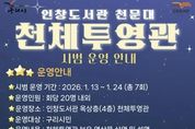 (원투원뉴스) 구리시는 오는 1월 13일부터 24일까지 인창도서관 옥상에 설치된 천체투영관의 시범운영을 실시한다고 밝혔다. 인창도서관은 2025년 1월 실체 천문 관측이 가능한 천문대를 개관해 운영해 왔으나, 눈비 등 기상 여건으로 관측이 어려운 한계를 보완하기 위해 천체투영관을 추가로 조성했다. 천체투영관은 지난해 8월 착공해 약 5개월간의 공사를 거쳐 12월 준공됐으며, 정식 개관에 앞서 시설과 프로그램의 완성도를 점검하고 이용자 의견을 수렴하기 위해 이번 시범운영을 진행한다. 인창도서관 천문대에는 돔형 관측실과 함께 250mm 굴절망원경과 태양망원경이 설치돼 있으며, 이번에 새롭게 조성된 천체투영관은 약 84㎡ 규모로 지름 7m의 경사식 반구형 돔 스크린과 최대 6K 해상도의 디지털 천체 투영기를 갖추고 있어 선명한 화질로 천문과학 영상과 별자리 관람이 가능하다. 또한 천문대와 연계 운영을 통해 천체 관측 시 별자리 이해를 돕고, 도심에서는 보기 어려운 은하수 관람 체험도 제공할 예정이다. 시범운영 프로그램은 기간 중 총 7회차로 운영되며, 사전 신청자 중 선착순으로 진행된다. 주
