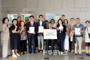 (원투원뉴스) 대전시의회가 의정소식지 '대전이음'의 ‘점자판’ 첫 호를 발간, 대전점자도서관을 방문해 점자도서 전달식을 가졌다. 대전시의회 조원휘 의장과 황경아 부의장, 이금선 교육위원장은 22일 대전점자도서관을 방문해 '대전이음' 점자 의정소식지 1호와 음성CD를 전달했다. 대전시의회는 최근 주요 의정소식과 유익한 생활문화 정보를 담은 점자 의정소식지를 8월부터 발간하고, 시각장애인들과의 소통의 문을 열었다. 점자판 '대전이음'은 점자도서 500부, 음성도서 CD 900개를 격월 제작해 대전지역 맹인학교・시각장애인 시설 등에 배부하고, 대전시각장애인협의회와 대전점자도서관 회원들에게도 구독신청을 받아 제공한다. 음성도서는 아직 점자를 익히지 못한 시각장애인들을 배려해 CD플레이어 보급 대상자에게 60분 분량 CD로 제작・발송하고, 시각장애인통신망 ‘넓은마을’을 비롯해 대전시의회와 점자도서관 누리집에도 음성 보이스(Voiceye)를 게시해 의정소식과 읽을거리를 제공한다. 이번 발행되는 첫 호에는 △중증장애인생산품 우선구매 촉구 5분자유발언을 비롯해 △특수학교 과밀화 문제 해결 현장 점검