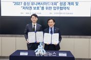 (원투원뉴스) 2027 충청 유니버시아드대회 조직위원회는 10일 서울 상암동 한국저작권보호원에서 대회 콘텐츠 저작권 보호를 위한 업무협약을 체결했다고 밝혔다. 이번 협약은 2027 충청 유니버시아드대회의 핵심 자산인 엠블럼, 마스코트 등 공식 상징물의 무단 도용을 차단하고, 국제 대회 수준의 브랜드 가치를 확고히 지키기 위해 마련됐다. 협약식에는 이창섭 조직위 부위원장과 보호원 박정렬 원장 등 양측 주요 인사 14명이 참석했다. 양 기관은 ▲대회 성공 개최 및 저작권 보호 인식 제고를 위한 공동 홍보 ▲상징물 보호 컨설팅 및 교육 지원 ▲온오프라인 저작권 침해 대응 지원 ▲기타 상호 협력이 필요한 사항 등을 공동으로 추진할 계획이다. 특히, 조직위와 보호원은 긴밀한 협력을 통해 대회 운영 중 발생 가능한 저작권 분쟁을 사전 차단하고, 글로벌 기준의 관리 체계를 구축해 대회 전반의 저작권 보호 수준을 한 단계 끌어올린다는 방침이다. 이창섭 조직위 부위원장은 “전 세계가 주목하는 국제대회인 만큼 저작권 보호를 글로벌 기준에 맞춰 철저히 관리하겠다”며 “이번 협약을 통해 대회 브랜드 가치