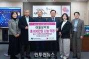 (원투원뉴스) 천안시복지재단은 지난 10일 여월장학회가 저소득 아동·청소년을 위해 후원금 830만 원을 기탁했다고 밝혔다. 여월장학회는 이날 천안시청 부시장실에서 열린 전달식에서 일시금 110만 원과 함께 3년간 매월 20만 원의 정기후원을 약정했다. 장학회는 지난 2023년부터 재단 후원에 참여해 지난해까지 총 680만 원을 기탁하는 등 지속적인 나눔을 실천해 오고 있다. 지난 2015년 설립된 여월장학회는 성정2동을 중심으로 저소득학생을 위한 장학사업을 꾸준히 추진해 오고 있으며, 특히 공적 지원의 기준에 미치지 못해 제도적 도움을 받기 어려운 학생들을 발굴하는 데 힘쓰고 있다. 김광식 여월장학회장은 “회원들의 작은 정성이 아이들에게 큰 희망이 되기를 바라는 마음으로 후원에 동참했다”며 “앞으로도 제도의 사각지대에 놓인 학생들을 지속적으로 발굴해 지역사회가 함께 아이들을 키워가는 환경을 만들어 갈 것”이라고 말했다. 이운형 천안시복지재단 이사장은 “지속적인 후원은 아이들에게 단순한 경제적 지원을 넘어 정서적 안정과 미래에 대한 자신감을 심어준다”며 “소중한 뜻이 아이들에게 온전히 전달될 수