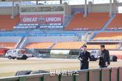 (원투원뉴스) 춘천시가 11일 송암스포츠타운 주경기장에서 열리는 강원FC의 아시아챔피언스리그 엘리트(ACLE) 홈경기를 앞두고 경기장 안전 확보와 원활한 경기 운영에 만전을 기하고 있다. 육동한 춘천시장은 9일 송암스포츠타운을 찾아 혹한기 경기 개최에 따른 그라운드 상태와 및 한파로 인한 관람석 결빙 등의 안전관리 상태를 최종 점검했다. 앞서 시는 한파 속 강원FC의 아시아 무대 홈경기가 춘천에서 안정적으로 개최될 수 있도록 춘천도시공사, 강원FC와 함께 기관별 역할 분담과 현장 대응 체계를 공유해 왔다. 이와 관련, 춘천도시공사는 잔디 보호를 위해 차광막을 설치하고 경기장 주변 제설제 사전 살포와 보행 동선 안전점검을 실시했다. 최근 한파 상황을 종합적으로 고려해 경기 당일 잔디 상태에 영향을 최소화할 수 있도록 이날 오전 차광막을 제거하는 등 그라운드 관리에 집중했다. 강원FC는 원정석을 포함한 관람석 전반에 대한 제설 및 결빙 제거 작업을 담당하며 관람객 안전 확보에 주력했다. 육동한 시장은 “혹한기 속에서 열리는 국제대회인 만큼 선수들의 경기 여건과 관람객 안전을 최우선으로 둬야한다”며 “남