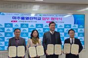 (원투원뉴스) 인천남부교육지원청은 지난 20일 미추홀구청, 인천인주초등학교, 인천대중예술고등학교와 함께 지역사회 협력 강화를 위한 ‘미추홀열린학교 업무협약식’을 개최했다. 이번 협약식은 학교와 지역사회가 자원을 공유하고 협력하는 문화를 확산함으로써, 교육 공동체 간의 상생 기반을 마련하기 위해 기획됐다. 네 개의 협약기관은 ▲학교 다목적강당의 주민 개방 ▲학교시설 개방 및 의견 공유 ▲지자체-학교 연계 프로그램 운영 방안 등에 대해 논의하고, 학교와 지역사회가 공존하는 실질적인 협업 모델을 구축하기로 뜻을 모았다. 한편 남부교육지원청 관내 학교들은 미추홀구청과 협력해 다목적강당(5개교)과 주차장(5개교)을 주민에게 개방하고 있으며, 중구청과는 영종국제물류고등학교가 시설개방 협약을 맺고 지역사회를 위한 개방 사업을 추진해 오고 있다. 남부교육지원청 관계자는 “이제 교육은 학교라는 울타리를 넘어, 지역사회와 함께 아이들을 키워나가는 시대”라며 “이번 협약으로 학교와 지역이 교육공동체로서 하나가 되는 계기가 되길 바란다”고 말했다.