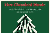 (원투원뉴스) 서울시 세종문화회관은 12월 3일부터 17일까지 매주 수요일 오후 12시 세종라운지에서 2025 겨울 ‘수요라운지음악회’를 개최한다. ‘수요라운지음악회’는 점심시간 30분 동안 누구나 편안하게 음악 연주를 즐길 수 있도록 기획됐다. 지난해 12월과 올해 7월, 시민들의 뜨거운 호응을 얻은 가운데 이번 겨울에는 더욱 다채롭고 감동적인 무대로 관객을 맞을 예정이다. '수요라운지음악회'는 세종문화회관 사회공헌 프로그램 ‘예술로 동행’의 일환으로 진행된다. ‘예술로 동행’은 2016년 시작되어, 서울시 문화예술 사각지대를 해소하고 자치구 문화예술 공간의 활성화를 통해 지역 예술 저변 확대에 기여해왔다. 12월 '수요라운지음악회'는 이러한 취지를 바탕으로, 시민들이 일상 속에서 예술을 자연스럽게 접할 수 있는 장을 제공하고자 한다. 새로운 예술 플랫폼 ‘세종라운지’에서 진행되는 '수요라운지음악회'는 오는 12월, 점심시간을 활용해 특별한 연주를 선보인다. 12월 3일 첫 무대는 ‘정오의 Jazz Spirit’로, 김우연(클라리넷)과 문재원(피아노)이 거슈윈의 '아메리카 인 파리', 슈라이너의 '임머 클라이