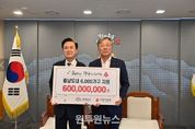 (원투원뉴스) 충남도는 24일 충남사회복지공동모금회로부터 추석 명절 이웃돕기 성금 6억원을 전달받았다고 밝혔다. 이날 도청 접견실에서 열린 배분금 전달식에서 성우종 충남사회복지공동모금회장은 “도내 어려운 이웃들이 따뜻한 명절을 보낼 수 있도록 써 달라”며 김태흠 지사에게 성금을 전달했다. 도는 배분금을 각 시군을 통해 기초수급자 등 취약계층 6000가구에 추석 명절 지원금으로 전달할 계획이다. 김 지사는 “추석 명절을 맞아 나눔을 실천한 충남사회복지공동모금회에 다시 한 번 감사하다”며 “도민 모두가 풍성한 한가위를 보낼 수 있도록 꼭 필요한 곳에 소중히 전달하겠다”고 말했다.