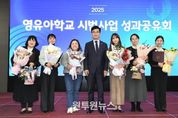 (원투원뉴스) 충청북도교육청은 12일, 청주 엔포드호텔에서 '2025. 영유아학교 시범사업 성과공유회'를 성황리에 개최했다. 영유아학교 시범사업 운영 성과를 공유하고, 영유아의 온전한 성장과 발달을 지원하기 위한 현장 중심의 소통과 성찰의 장으로 마련됐다. 이날 행사에는 충북교육청 및 육아종합지원센터 관계자, 영유아학교 시범학교 및 시범사업 운영 기관 교직원 등 약 200명이 참석하여 시범사업 운영 경험을 공유하고 발전 방향을 함께 모색했다. 특히, 변혜경 국공립유치원연합회장, 이옥주 사립유치원연합회장, 성락준 어린이집연합회장이 모두 참석하여 영유아학교 시범사업 운영에 관심을 보였다. 행사는 시범학교 운영기관인 예광유치원 유아들이 선보인 난타공연으로 시작됐으며, 이어 영유아교육 정책 추진에 기여한 교직원에게 유공 표창을 전달했다. 박창현 육아정책연구소 연구원은 '유보통합, 질적 전환의 관점에서 다시 묻다: 최상의 교육‧보육이란 무엇인가?'를 주제로 특강을 진행했으며, 영유아교육의 질 제고와 보육‧교육의 조화로운 방향성에 대해 시사점을 제시했다. 이어, ▲언제나 책봄 이음책 사업 ▲교육활