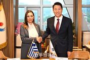 (원투원뉴스) 오세훈 서울시장은 25일 오전 10시 서울시청 집무실에서 올가 케팔로야니(Olga Kafalogianni) 그리스 관광부 장관을 만나 광화문광장‘감사의정원’에 전시될 석재 기증에 감사를 표하고 서울-그리스 간 관광 분야 협력에 대해 논의했다. 서울시는 광화문광장에 6‧25 한국전쟁 참전국에 대한 감사와 존경을 담아 22개국에서 채굴한 석재로 만든 조형물을 조성 중으로 이중 ‘그리스’가 첫 번째로 석재를 기증, 그리스 북부 지역에서 생산된 대리석 볼라카스(Volakas) 20톤이 내달 말 인천항을 통해 들어올 예정이다. 오 시장은 “감사의정원 취지에 공감하고 흔쾌히 귀한 석재를 기증해 주신 그리스에 진심으로 감사드리고, 정원을 정성스럽게 조성해 자유와 평화를 위해 싸워주신 그리스의 희생을 전 세계에 알릴 것”이라며 “이번 프로젝트를 계기로 대한민국-그리스, 또 친선 도시 20주년을 앞둔 서울-아테네 간 우호 협력이 더욱 깊어지길 바란다”고 말했다. 이에 올가 장관은 “자유, 평화를 위해 투쟁했던 분들을 기리고 이런 역사를 후대에 알려줄 ‘감사의정원’은 정말 의미 있는 프로젝트”라며 “그간 한국과 그