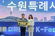 (원투원뉴스) 수원특례시가 ‘제6회 대한민국 축제 엑스포 베스트 축제 어워드’에서 기초자치단체 부문 대상을 받았다. 시상식은 19일 수원컨벤센센터에서 열렸다. 수원시는 17~19일 수원컨벤션센터에서 열린 제6회 대한민국 축제 엑스포에 참가해 부스를 운영하며 ‘2026-2027 수원 방문의 해’와 수원화성문화제, 정조대왕능행차 공동재현, 수원화성 미디어아트 등 수원시를 대표하는 축제를 방문객들에게 홍보했다. 베스트 축제 어워드 수상 지자체는 홍보 부스 운영계획, 프로그램 참여도, 현장 평가 등을 종합적으로 평가해 선정한다. 수원시는 마케팅, 콘텐츠, 부스 운영, 대중 선호도 등 모든 분야에서 우수한 성과를 인정받아 최고점을 받았다. 시상식에 참석한 선은임 수원시 문화관광체육국장은 “대한민국 축제 엑스포에서 수원의 축제 역량을 인정받고, 대상을 받게 돼 기쁘다”며 “앞으로도 차별화된 콘텐츠로 글로벌 축제 도시로서 위상을 높여 나가겠다”고 밝혔다. 대한민국 축제 엑스포는 전국의 대표 축제들을 만날 수 있는 국내 최대 축제 전문 박람회다.