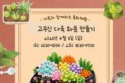 (원투원뉴스) 제주도교육청 송악도서관은 4월 5일 식목일을 맞아 가족 구성원 20팀을 대상으로 가족 문화체험 프로그램 ‘고무신 다육 화분 만들기’를 운영한다. 이번 프로그램은 이수영 ㈜꽃섬 대표와 함께 그림책‘고무신 기차’를 읽고 고무신을 활용해 다육 화분을 만들어 보는 체험 활동으로 회차별 10팀씩 총 2회에 걸쳐 진행된다. 1회차는 5일 오후 1시 30분부터 3시까지 2회차는 오후 3시 30분부터 5시까지 운영되며 총 20팀이 참여할 수 있다. 참가 신청은 제주특별자치도교육청 공공도서관 누리집에서 25일 오전 10시부터 선착순으로 받는다. 송악도서관 관계자는 “가족이 함께 그림책을 읽고 자연과 관련된 체험 활동에 참여하며 독서의 즐거움과 환경의 소중함을 함께 느낄 수 있는 시간이 되길 바란다”며 “앞으로도 지역 주민이 함께 참여할 수 있는 다양한 가족 프로그램을 지속적으로 운영하겠다”고 말했다.