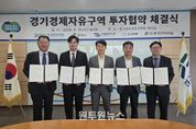 (원투원뉴스) 경기경제자유구역청은 15일 경기경제청 8층 회의실에서 평택시 및 자동차부품, 반도체, 화학 제조기업 5개사(㈜왕성이노텍, 조양메탈㈜, ㈜광석인터내셔날/그 외 2개 기업 서면 협약)와 평택 포승(BIX)지구 산업시설용지 투자협약을 체결했다. 협약식에는 김능식 경기경제자유구역청장, 이성호 평택시 부시장, 김재균 경기도의원, 협약기업 대표 등이 참석했다. 이번 협약을 통해 5개 기업은 총 640억 원 규모의 투자를 진행하며, 포승지구 내 4만3천여㎡ 부지에 자동차 내·외장재 부품, 자동차용 배터리 케이스, 자동차 부품 볼트·너트, 화학제품, 반도체 산업용 질량유량 제어기 등의 생산시설을 구축할 예정이다. 이를 통해 107명의 신규 일자리가 창출되며, 평택 포승지구는 자동차용 부품 및 화학, 반도체 소재 기업 집적화를 통한 첨단 제조 산업 클러스터를 구축할 예정이다. 협약기업인 ㈜왕성이노텍(대표 왕성호)은 자동차 내·외장재 부품을 생산하는 기업이며, 금형 및 사출을 기반으로 한 정밀 제조 역량을 보유하고 있고, 에너지 선도 지정 기업으로서 미래 모빌리티 산업 분야 핵심 기술 개발을 선도하고
